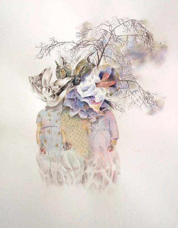 The fates, 50x40cm, mixed media on paper